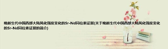 本文关于晚新生代中国西部大陆风化强度变化的Sr-Nd同位素证据的简介就讲解完毕,希望对大家有所帮助。