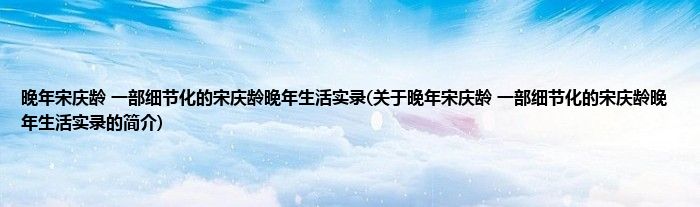 本文关于晚年宋庆龄 一部细节化的宋庆龄晚年生活实录的简介就讲解完毕,希望对大家有所帮助。