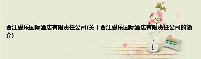 本文关于晋江爱乐国际酒店有限责任公司的简介就讲解完毕,希望对大家有所帮助。