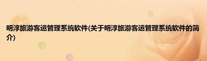 明淳旅游客运管理系统软件(关于明淳旅游客运管理系统软件的简介)