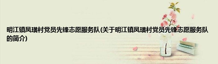 明江镇凤璜村党员先锋志愿服务队(关于明江镇凤璜村党员先锋志愿服务队的简介)
