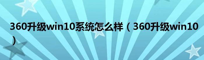 大家好,精选小编来为大家解答以上问题。360升级win10系统怎么样,360升级win10很多人还不知道,现在让我们一起来看看吧!