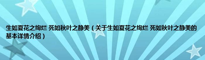 本文关于生如夏花之绚烂 死如秋叶之静美的基本详情介绍就讲解完毕,希望对大家有所帮助。