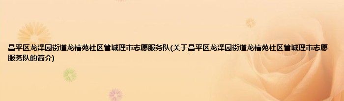 昌平区龙泽园街道龙禧苑社区管城理市志愿服务队(关于昌平区龙泽园街道龙禧苑社区管城...