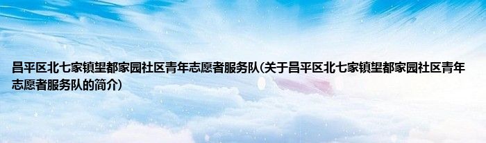 昌平区北七家镇望都家园社区青年志愿者服务队(关于昌平区北七家镇望都家园社区青年志愿者服务队的简介)