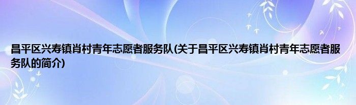 本文关于昌平区兴寿镇肖村青年志愿者服务队的简介就讲解完毕,希望对大家有所帮助。