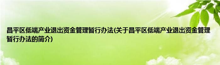 本文关于昌平区低端产业退出资金管理暂行办法的简介就讲解完毕,希望对大家有所帮助。