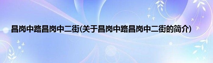 昌岗中路昌岗中二街(关于昌岗中路昌岗中二街的简介)