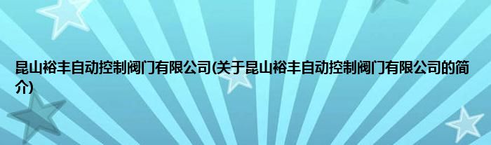 本文关于昆山裕丰自动控制阀门有限公司的简介就讲解完毕,希望对大家有所帮助。