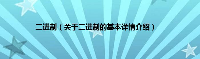 本文关于二进制的基本详情介绍就讲解完毕,希望对大家有所帮助。