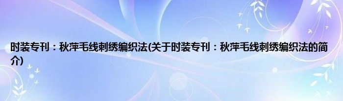 本文关于时装专刊:秋萍毛线刺绣编织法的简介就讲解完毕,希望对大家有所帮助。
