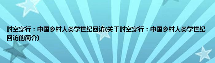 本文关于时空穿行:中国乡村人类学世纪回访的简介就讲解完毕,希望对大家有所帮助。