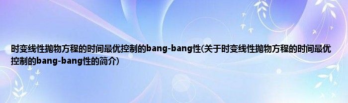 大家好,时变线性抛物方程的时间最优控制的bang-bang性,关于时变线性抛物方程的时间最优控制的bang-bang性的简介很多人还不知道,现在让我们一起来看看吧!