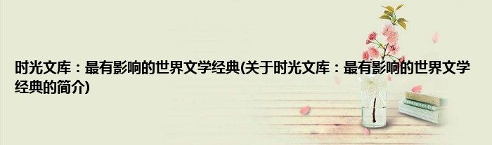 本文关于时光文库:最有影响的世界文学经典的简介就讲解完毕,希望对大家有所帮助。