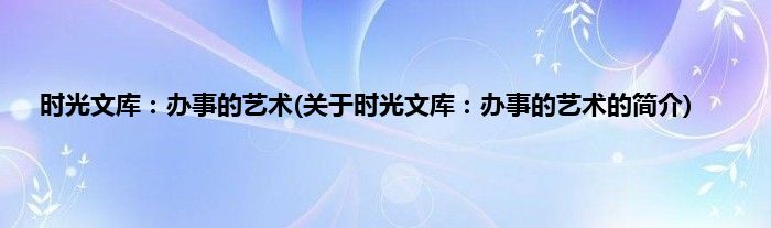 本文关于时光文库:办事的艺术的简介就讲解完毕,希望对大家有所帮助。