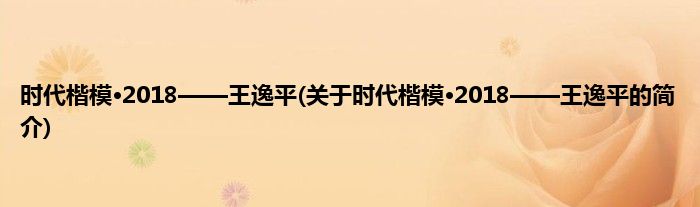 本文关于时代楷模·2018——王逸平的简介就讲解完毕,希望对大家有所帮助。