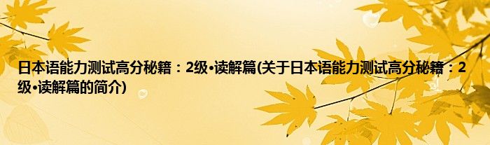 本文关于日本语能力测试高分秘籍:2级·读解篇的简介就讲解完毕,希望对大家有所帮助。