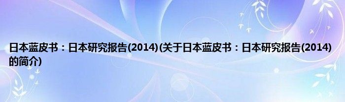 1、 《日本蓝皮书:日本研究报告(2014)》是2014年3月社会科学文献出版社出版的图书。