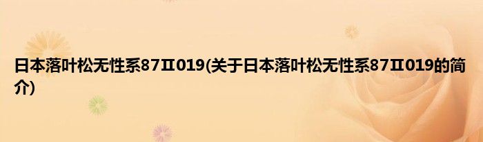 本文关于日本落叶松无性系87Ⅱ019的简介就讲解完毕,希望对大家有所帮助。