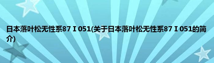 本文关于日本落叶松无性系87Ⅰ051的简介就讲解完毕,希望对大家有所帮助。