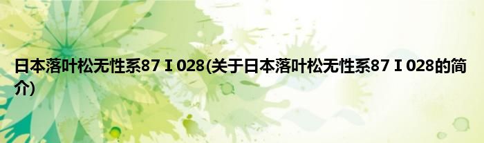 本文关于日本落叶松无性系87Ⅰ028的简介就讲解完毕,希望对大家有所帮助。