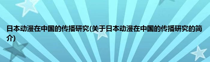 本文关于日本动漫在中国的传播研究的简介就讲解完毕,希望对大家有所帮助。
