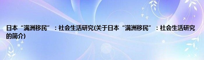 本文关于日本“满洲移民”:社会生活研究的简介就讲解完毕,希望对大家有所帮助。