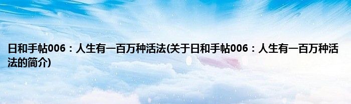 本文关于日和手帖006:人生有一百万种活法的简介就讲解完毕,希望对大家有所帮助。