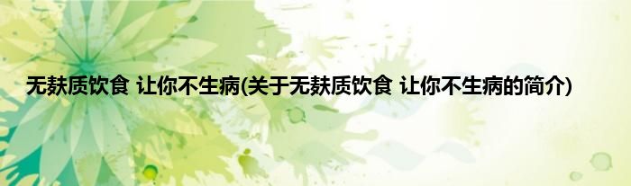 大家好,无麸质饮食,让你不生病,关于无麸质饮食,让你不生病的简介很多人还不知道,现在让我们一起来看看吧!