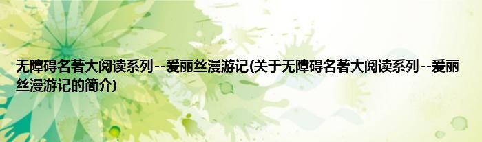 本文关于无障碍名著大阅读系列--爱丽丝漫游记的简介就讲解完毕,希望对大家有所帮助。