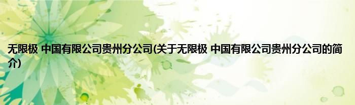 大家好,无限极 中国有限公司贵州分公司,关于无限极 中国有限公司贵州分公司的简介很多人还不知道,现在让我们一起来看看吧!