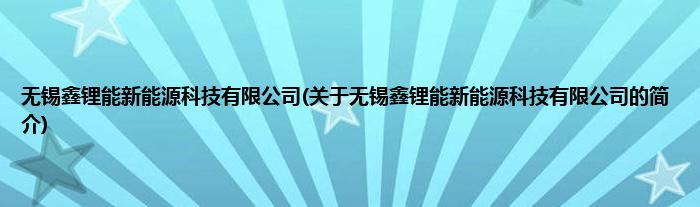 本文关于无锡鑫锂能新能源科技有限公司的简介就讲解完毕,希望对大家有所帮助。