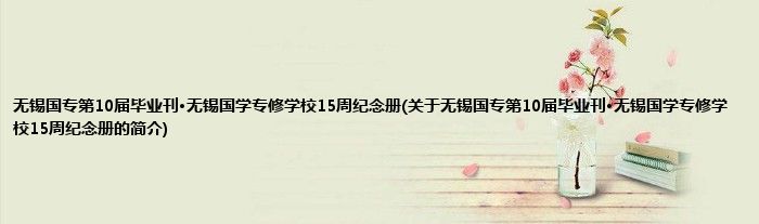 本文关于无锡国专第10届毕业刊·无锡国学专修学校15周纪念册的简介就讲解完毕,希望对大家有所帮助。