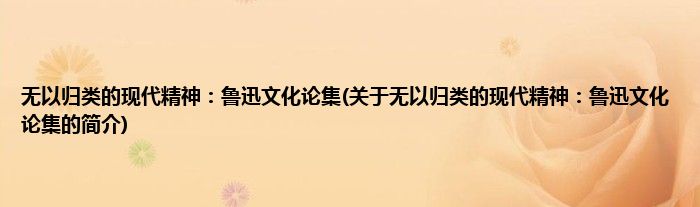 本文关于无以归类的现代精神:鲁迅文化论集的简介就讲解完毕,希望对大家有所帮助。