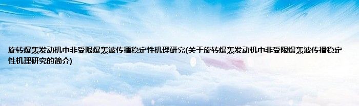 大家好,旋转爆轰发动机中非受限爆轰波传播稳定性机理研究,关于旋转爆轰发动机中非受限爆轰波传播稳定性机理研究的简介很多人还不知道,现在让我们一起来看看吧!
