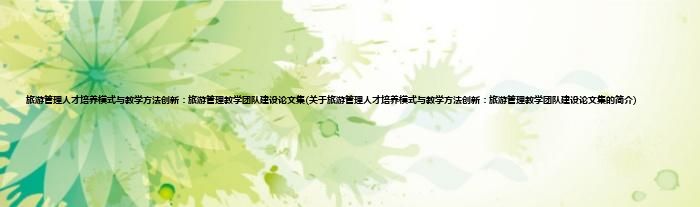 本文关于旅游管理人才培养模式与教学方法创新:旅游管理教学团队建设论文集的简介就讲解完毕,希望对大家有所帮助。