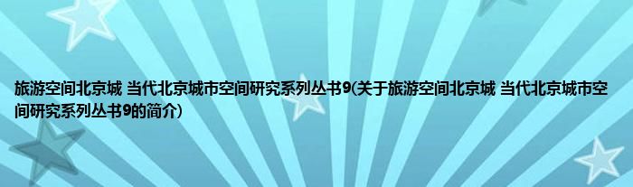 本文关于旅游空间北京城 当代北京城市空间研究系列丛书9的简介就讲解完毕,希望对大家有所帮助。