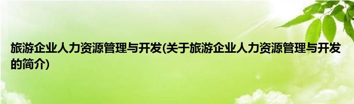 旅游企业人力资源管理与开发(关于旅游企业人力资源管理与开发的简介)