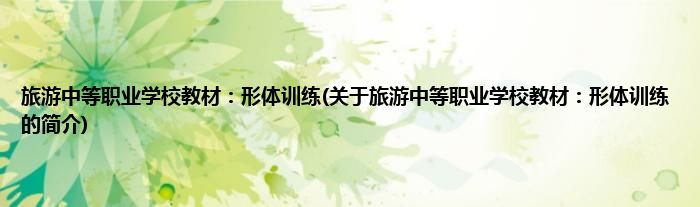 本文关于旅游中等职业学校教材:形体训练的简介就讲解完毕,希望对大家有所帮助。