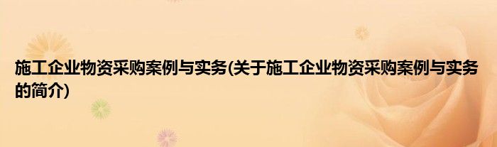 大家好,施工企业物资采购案例与实务,关于施工企业物资采购案例与实务的简介很多人还不知道,现在让我们一起来看看吧!