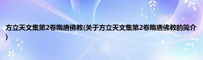 大家好,方立天文集第2卷隋唐佛教,关于方立天文集第2卷隋唐佛教的简介很多人还不知道,现在让我们一起来看看吧!
