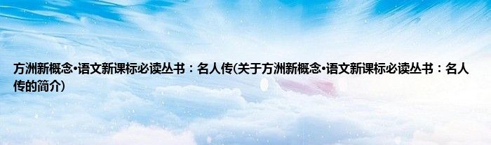 本文关于方洲新概念·语文新课标必读丛书:名人传的简介就讲解完毕,希望对大家有所帮助。