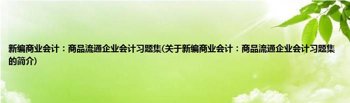 本文关于新编商业会计:商品流通企业会计习题集的简介就讲解完毕,希望对大家有所帮助。