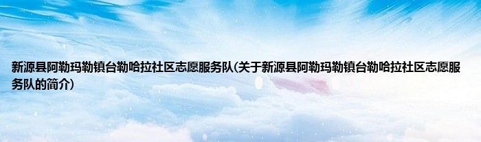 新源县阿勒玛勒镇台勒哈拉社区志愿服务队(关于新源县阿勒玛勒镇台勒哈拉社区志愿服务...