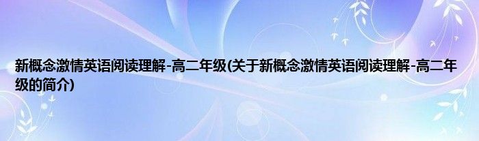 本文关于新概念激情英语阅读理解-高二年级的简介就讲解完毕,希望对大家有所帮助。