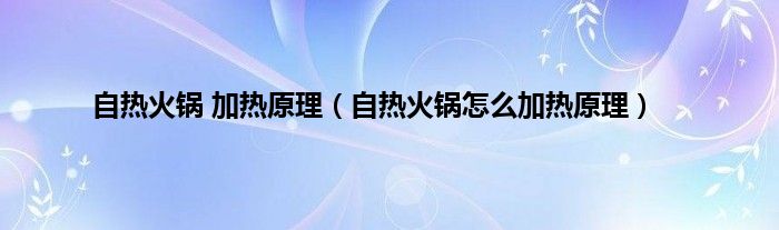 一、 自热火锅加热原理是什么