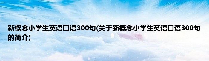 本文关于新概念小学生英语口语300句的简介就讲解完毕,希望对大家有所帮助。