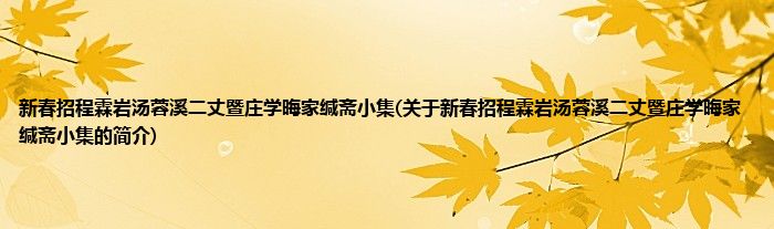 新春招程霖岩汤蓉溪二丈暨庄学晦家缄斋小集(关于新春招程霖岩汤蓉溪二丈暨庄学晦家缄斋小集的简介)