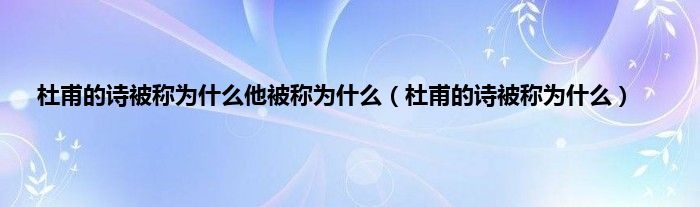 大家好,小科来为大家解答以上问题。杜甫的诗被称为什么他被称为什么,杜甫的诗被称为什么很多人还不知道,现在让我们一起来看看吧!