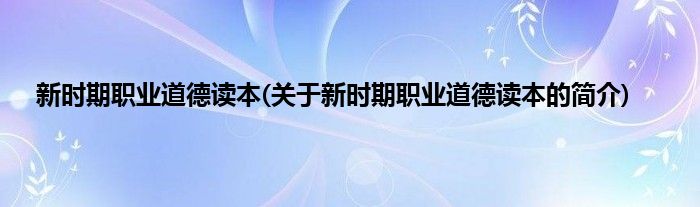 本文关于新时期职业道德读本的简介就讲解完毕,希望对大家有所帮助。